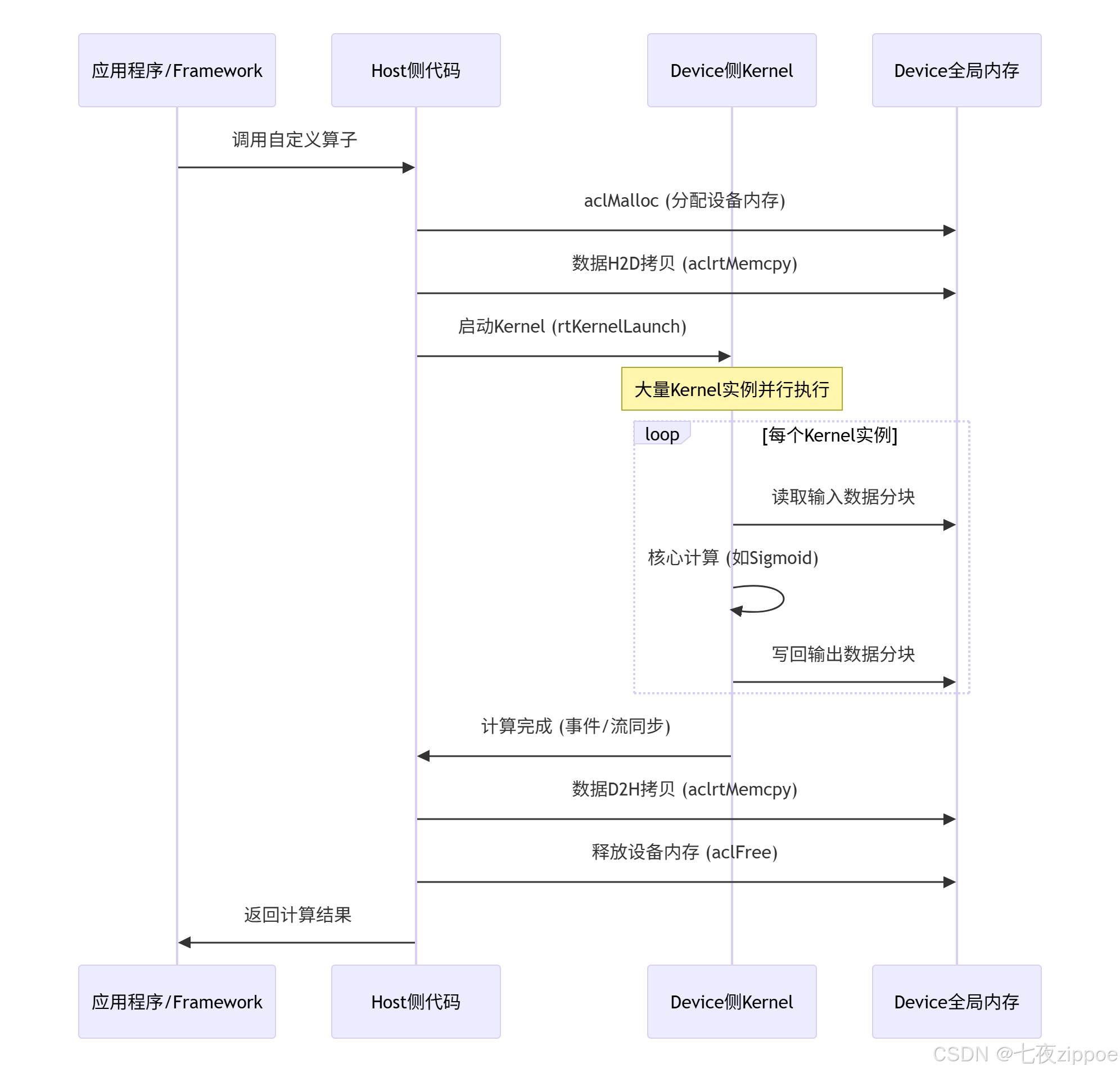 理解 Host 和 Device 的职责分工是编写 Ascend C 代码的基石。这是一种典型的异构计算(Heterogeneous Computing)模型。