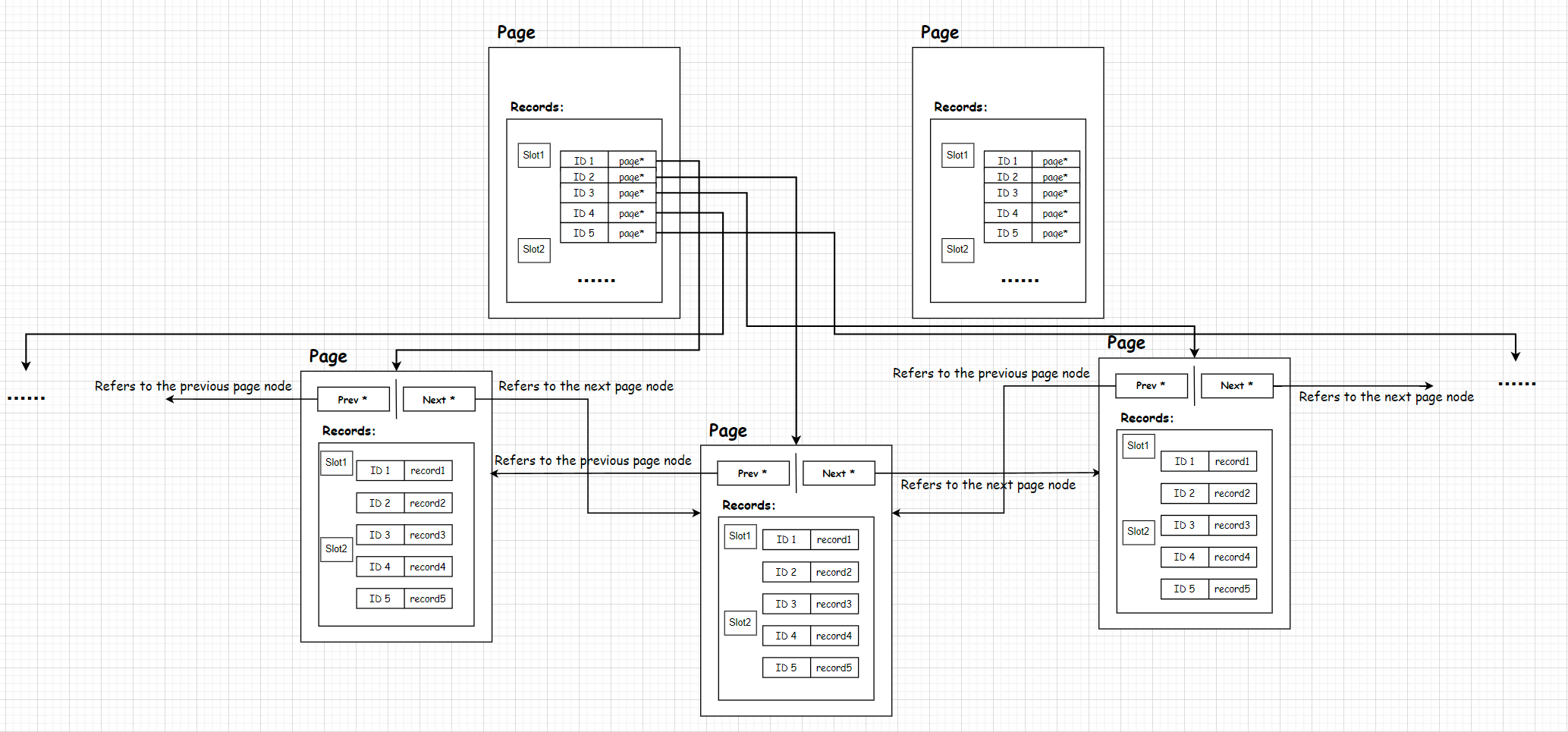 通常叶子结点page存储的是slots, 键值, 以及具体的数据(具体的数据根据索引的类型而不同, 聚簇索引管理行级数据, 二级索引则是键值对应的聚簇索引指针);