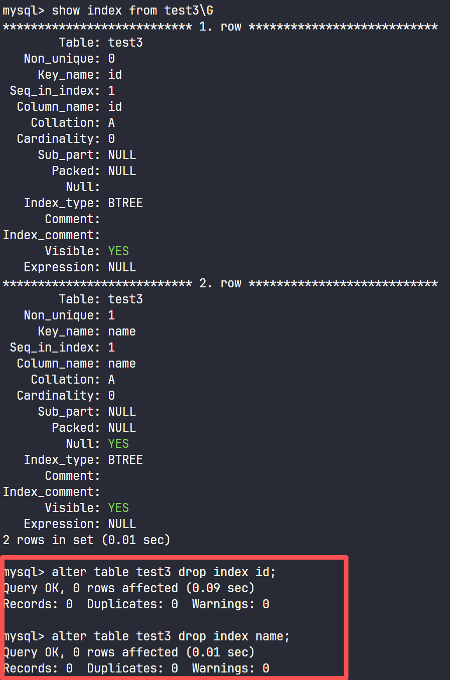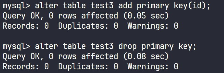 删除索引的方式需要注意, 通常主键约束是整张表的属性, 因此在删除主键索引时可以直接使用alter ... drop Primary key的方式进行删除;