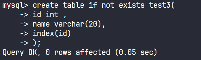 INDEX( column )创建CREATE TABLE [IF NOT EXISTS] table_name(column type [, ...]INDEX(column) );