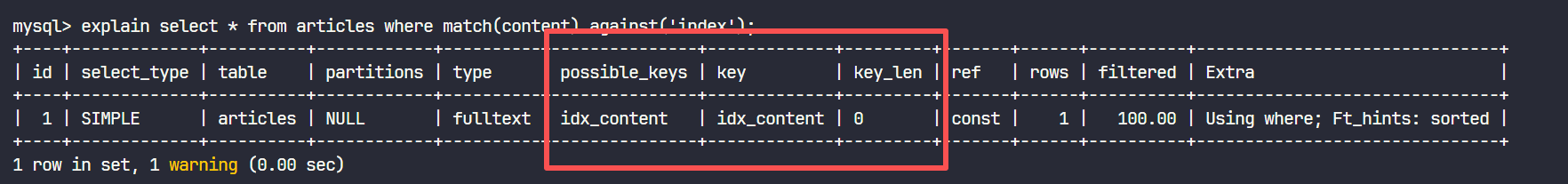 ALTER TABLE articles ADD FULLTEXT INDEX idx_content (content);