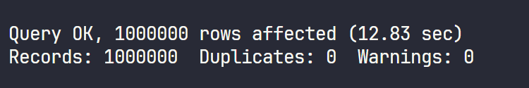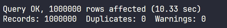 我们使用原先的语句重新创建一张表(student2)并插入同样体量的数据后, 不对该表创建索引, 对两张表同时新插入1000000条数据并观察效率;