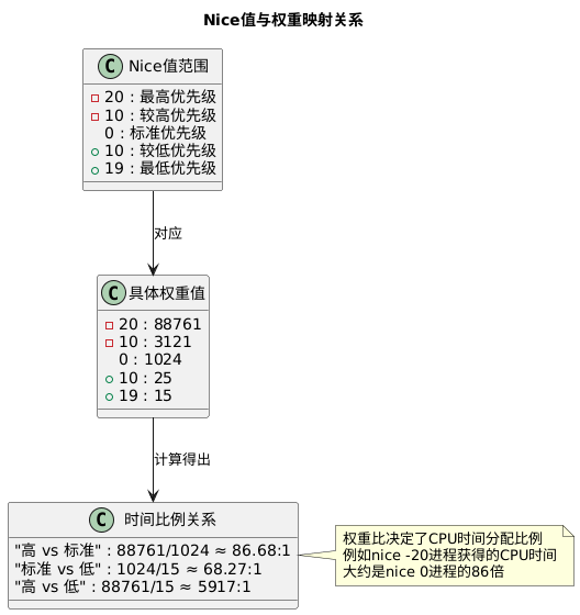 CFS通过精心设计的权重映射表将nice值转换为具体的权重数值: