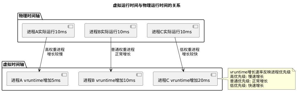 从这些计算可以看出,高优先级进程的vruntime增长缓慢,而低优先级进程的vruntime快速增长,这正是CFS实现公平调度的关键机制。