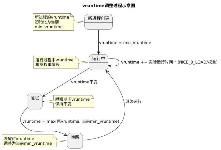 当进程进入睡眠状态时,其vruntime保持不变。当进程被唤醒时,CFS需要决定如何将其重新纳入调度考虑: