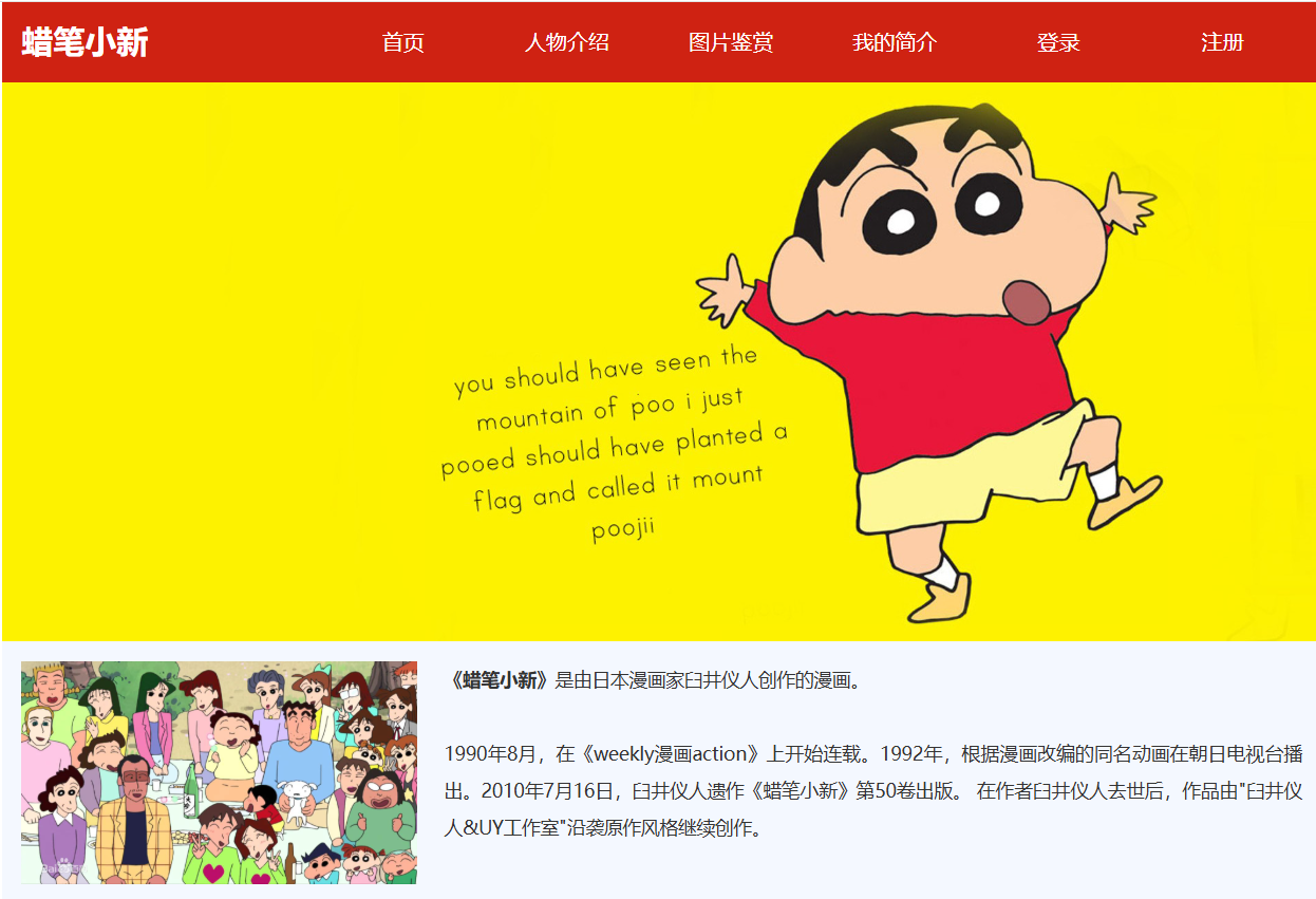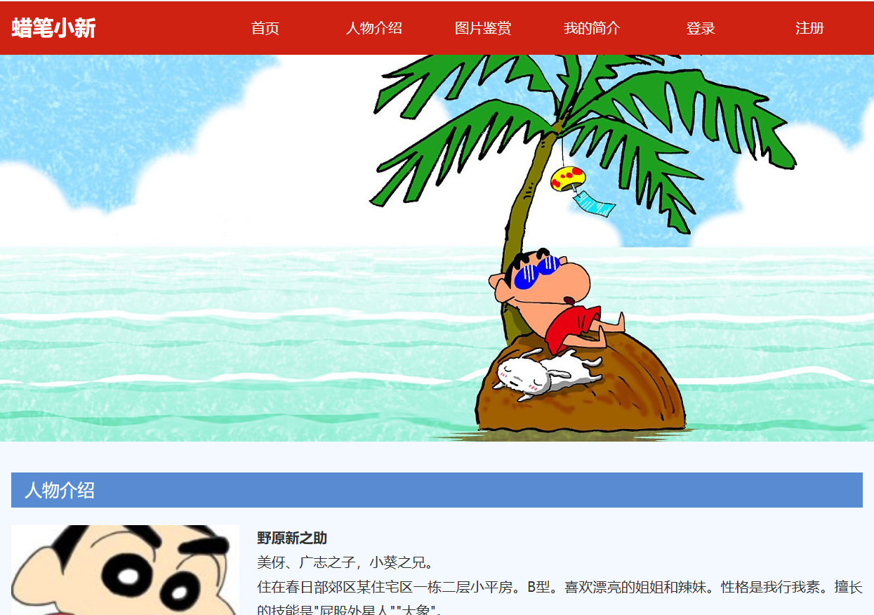 - 首页(index.html):网站入口,展示《蜡笔小新》基本介绍
