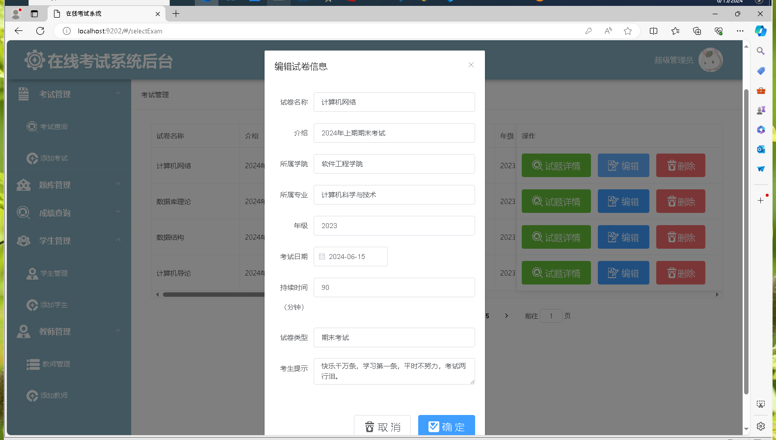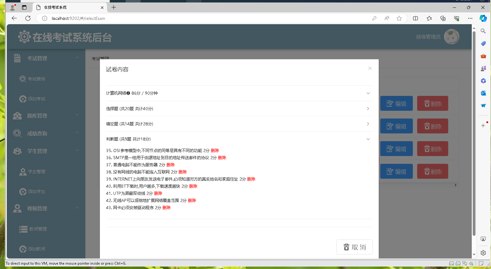 这个也是帮助客户修改在线考试管理系统,基本开发工具框架还是之前那些Idea开发工具中使用Java写后端,VSCode中使用Vue写前端,分工清晰。Maven管依赖,SpringBoot搭接口,MySQL存储数据就行。剩下就是分工写或者像咱们全栈开发,项目体积不是很大情况下建议长期保持一个人前后端写完,至少能了解加深项目整体流程,后期无非都是在现有项目上添加模块,或者优化模块,所以记得一定要分层开发,哪怕最简单的三层开发都行。