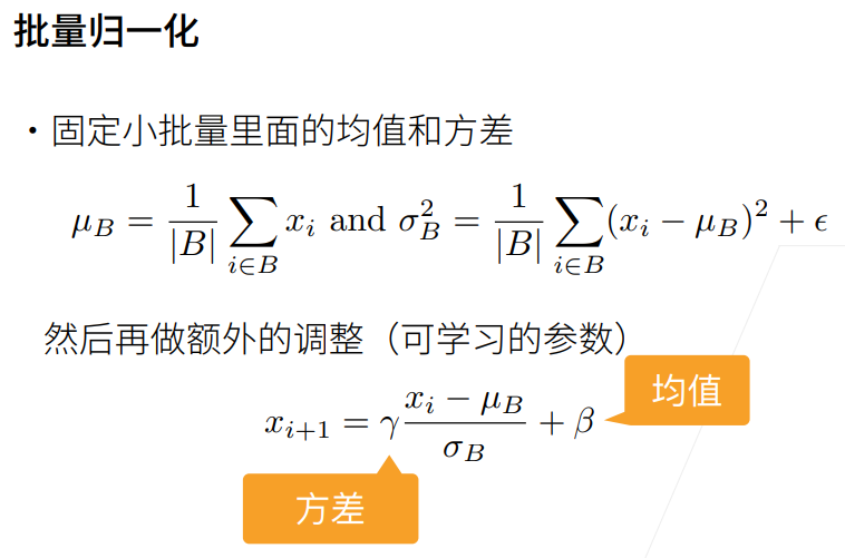 - 将每一层的输入放在一个差不多的分布里,就可以用一个比较大的精度了,就可以加速收敛速度。