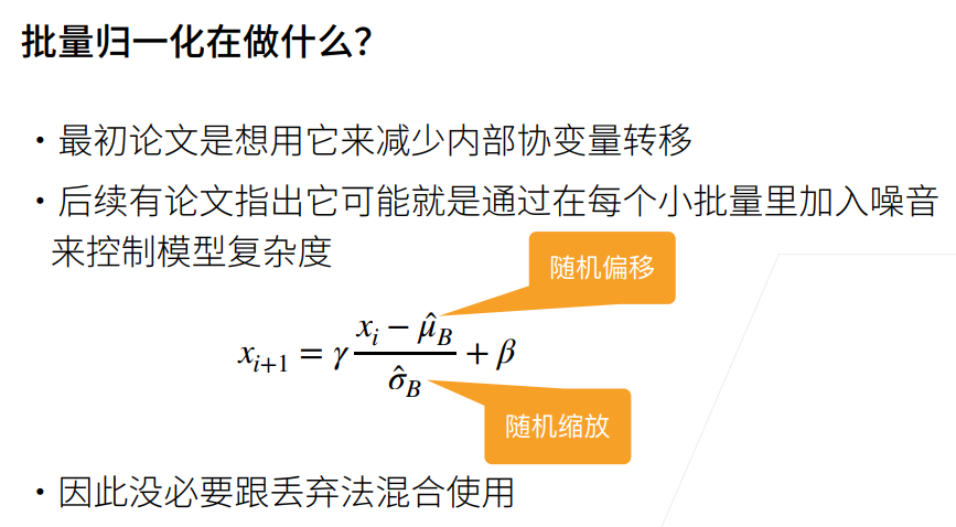 因为每次取得batch中的数据都是不同的,所以在batch中计算的均值和方差也是不同的,所以引入了随机性。
