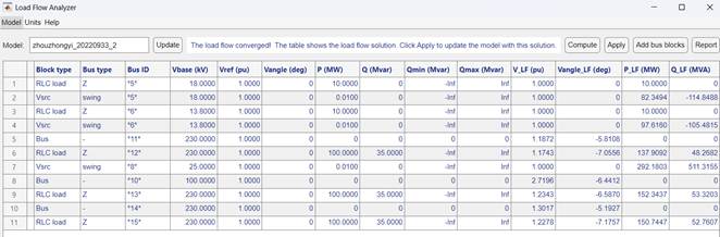 (1)使用powergui进行潮流计算,保存计算结果。