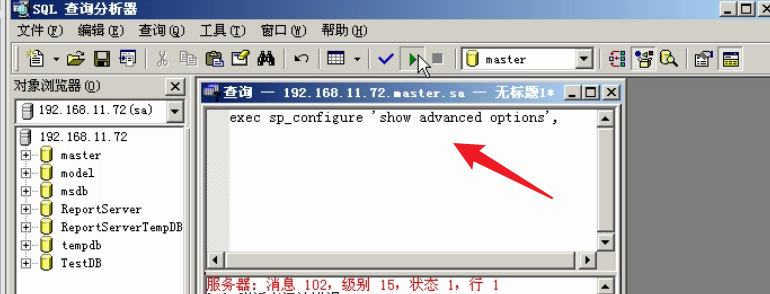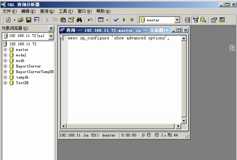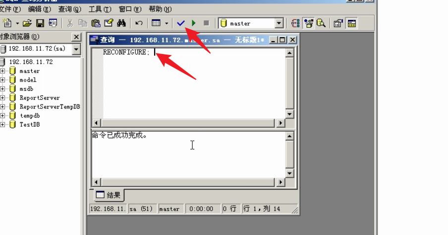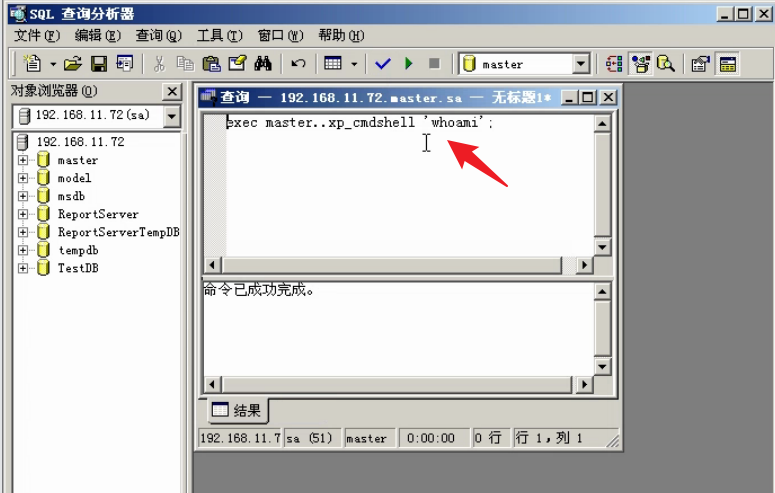 回到查询分析器,执行这个命令,注意后面不是逗号,是分号