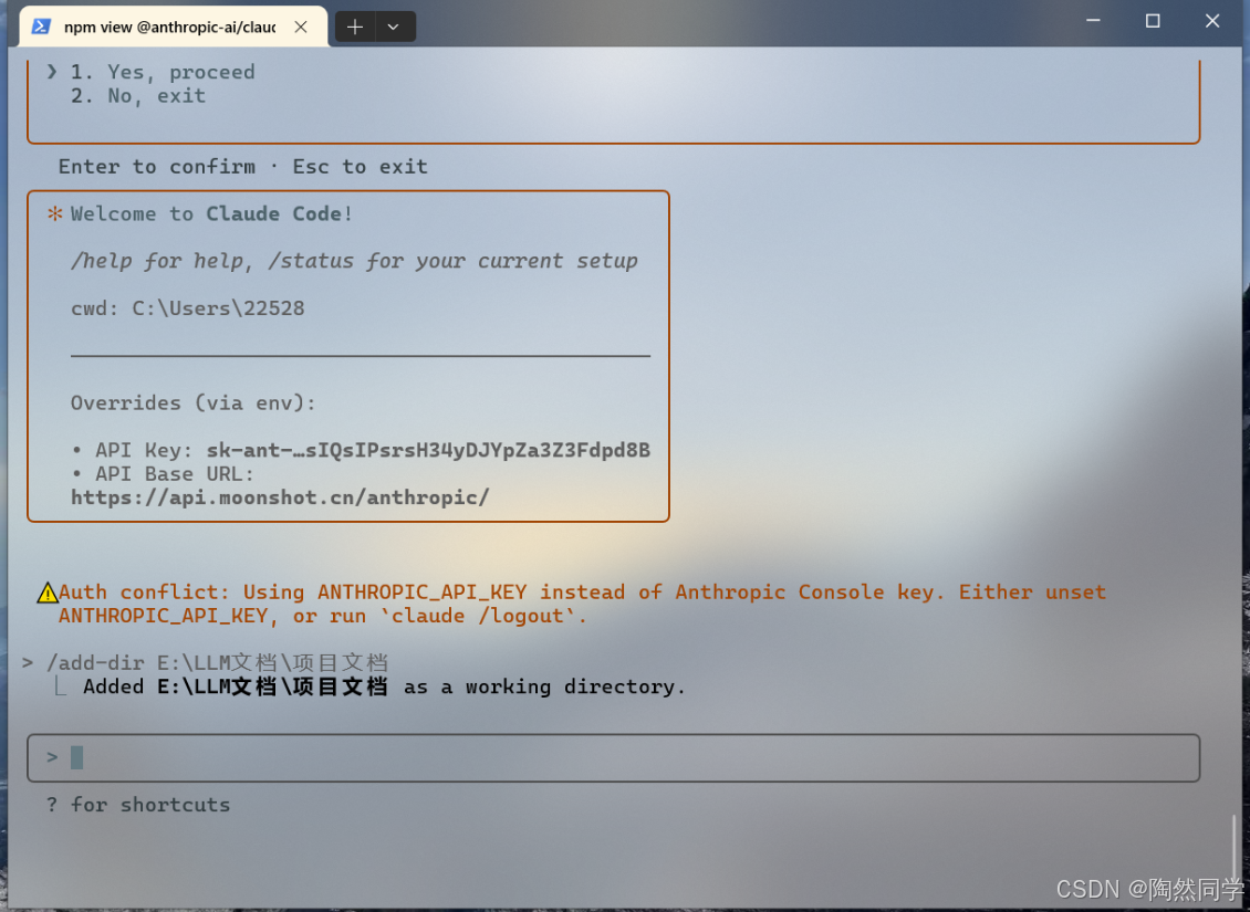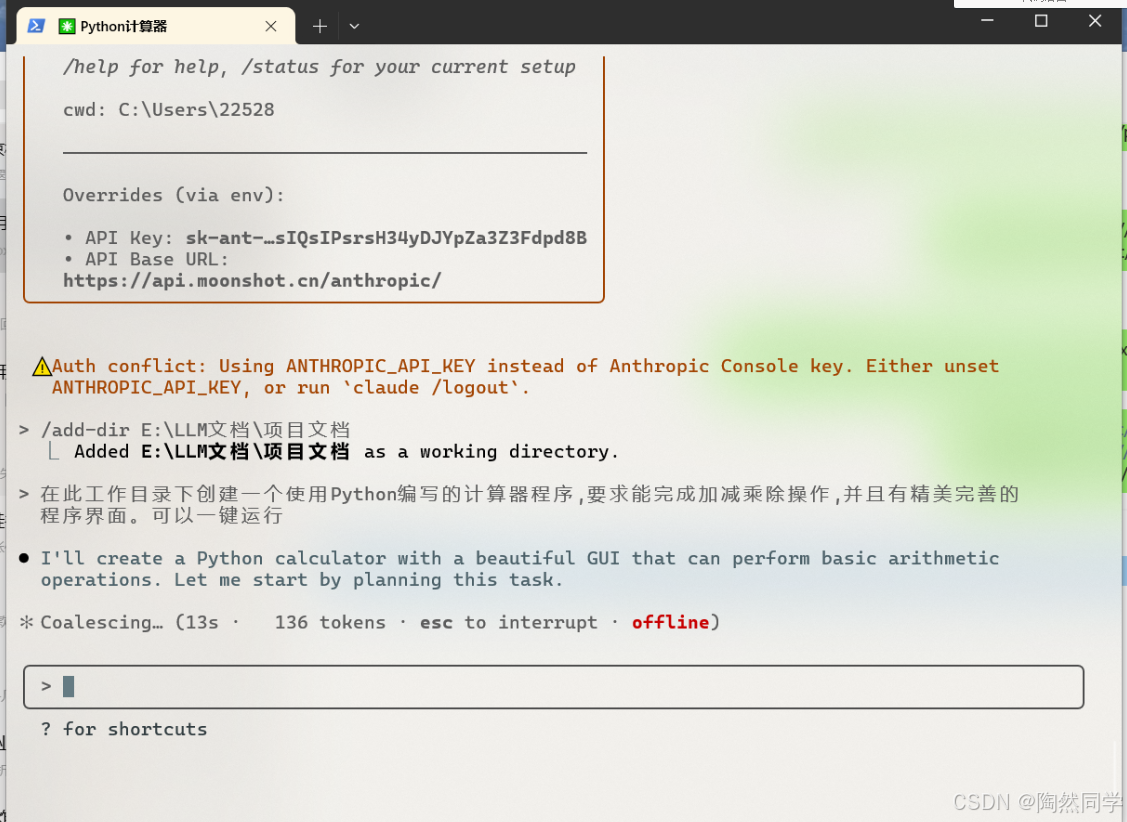 功能” 或 “⚠ 当前Anthropic API凭据无效” 等。有了这些信息,你可以据此修复环境,然后重试之