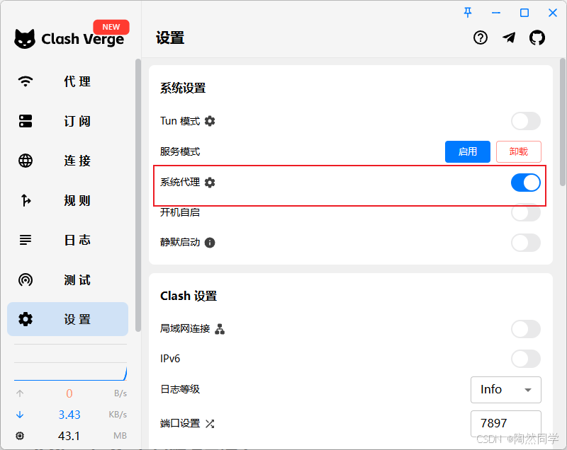 在开启代理服务后还需要在当前终端中输入以下配置,为让cmd也能使用代理服务。