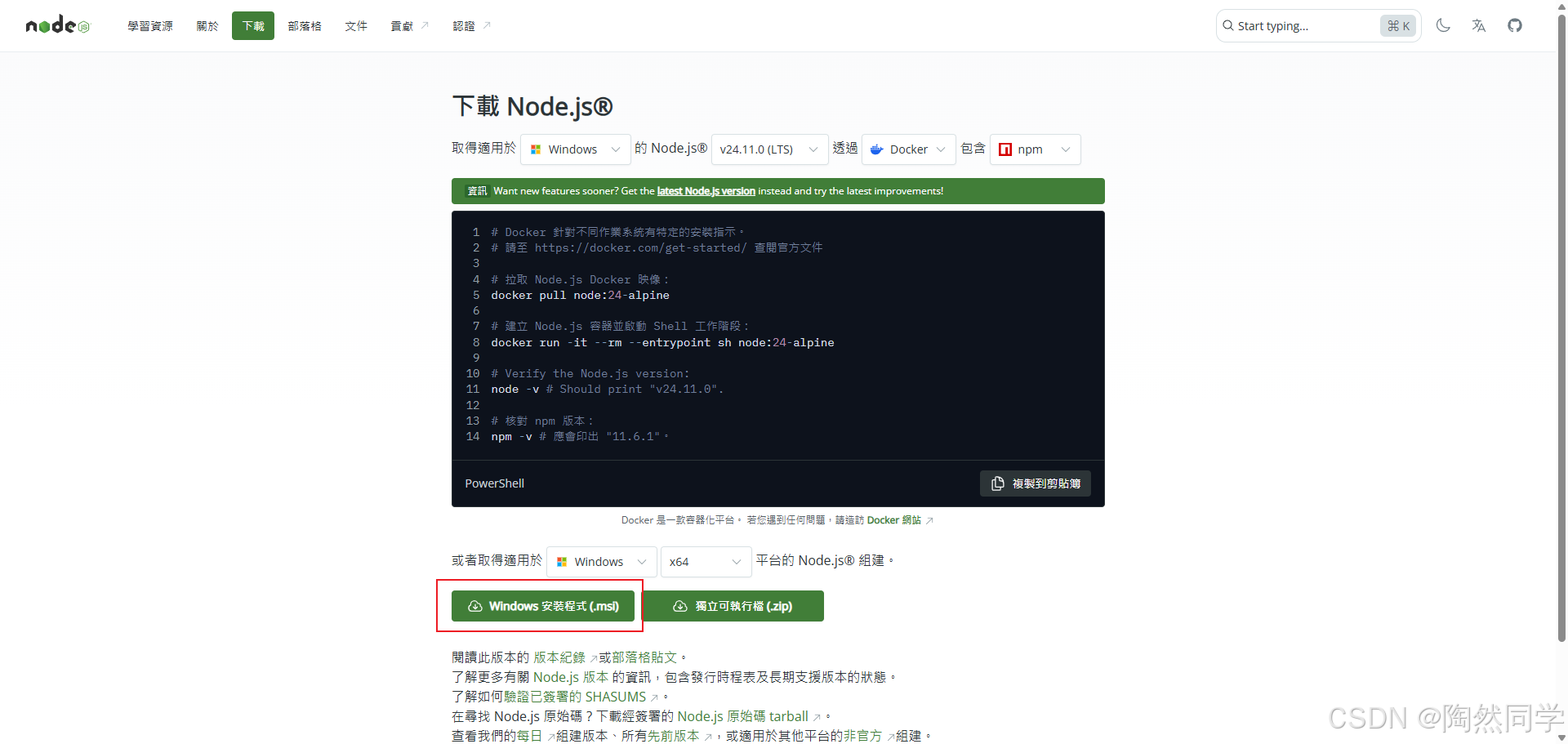 下载Node.js 18+ 版本,安装提示一步一步进行安装