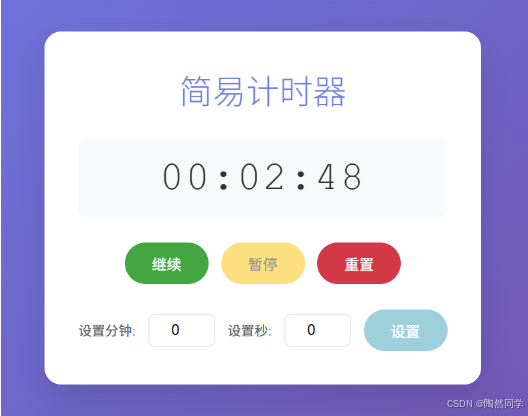 在此工作目录下创建一个使用JavaScript编写的简单的计时器程序,要求交互界面,可以一键运行