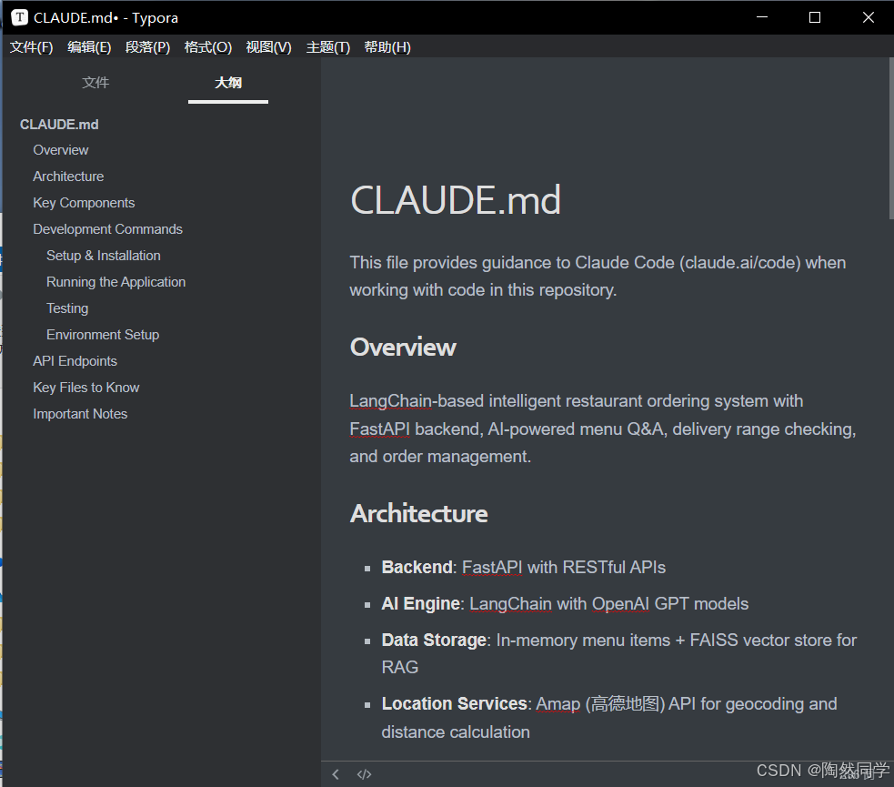 Claude根据代码自动提取要点,你也可以在Claude的帮助下完善它——比如询问 “请列出项目架构