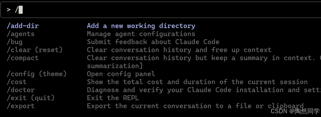 在使用Claude Code时,还有很多其他的命令,这里输入