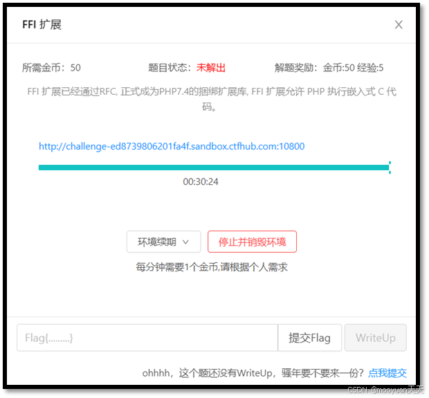 打开关卡,页面提示“FFI 扩展已经通过RFC, 正式成为PHP7.4的捆绑扩展库, FFI 扩展允许 PHP 执行嵌入式 C 代”,如下所示。