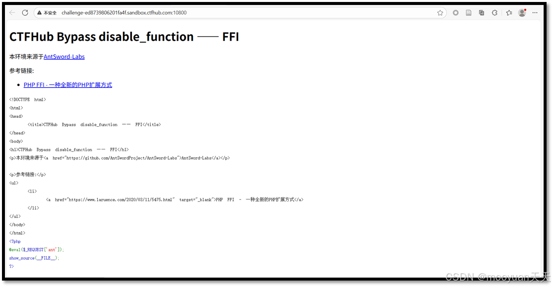 CTFHub Bypass disable_function —— FFI本环境来源于AntSword-Labs 参考链接: