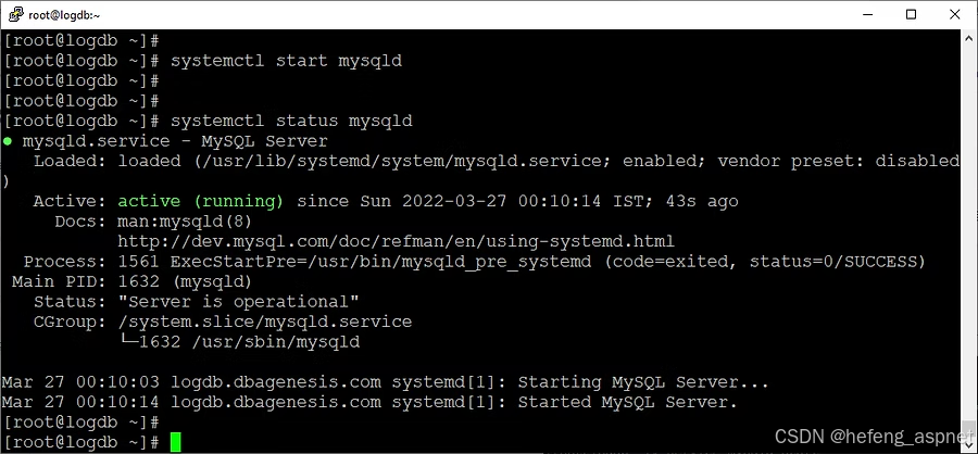 # systemctl start mysqld