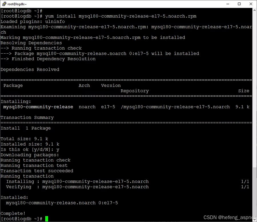 # yum install mysql80-community-release-el7-5.noarch.rpm