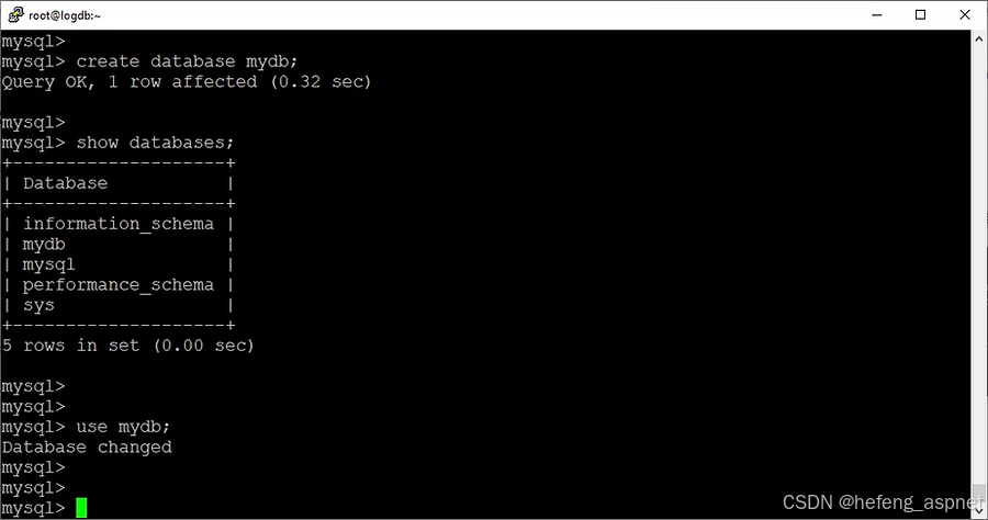 mysql> create database mydb;