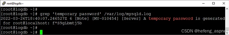 # grep 'temporary password' /var/log/mysqld.log