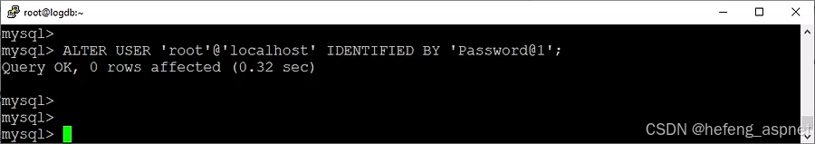 mysql>ALTER USER 'root'@'localhost' IDENTIFIED BY 'password';
