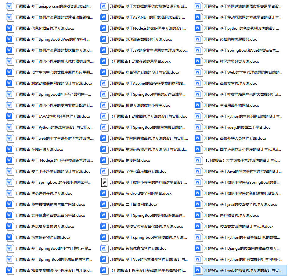 以上是某同学的毕业设计答辩的过程,如果你现在还没有参加答辩,还是开题阶段,已经选好了题目不知道怎么写开题报告,可以下面找找有没有自己符合自己题目的开题报告内容,列表中的开题报告都是往届真实的开题报告,可发送使用或参考。文末或底部来联xi可免费获取
