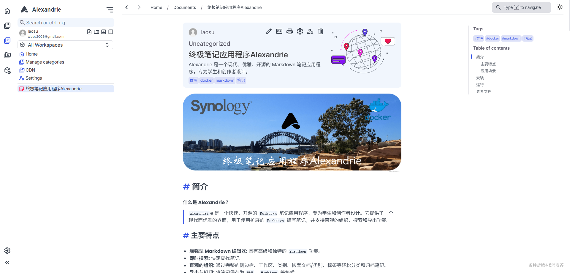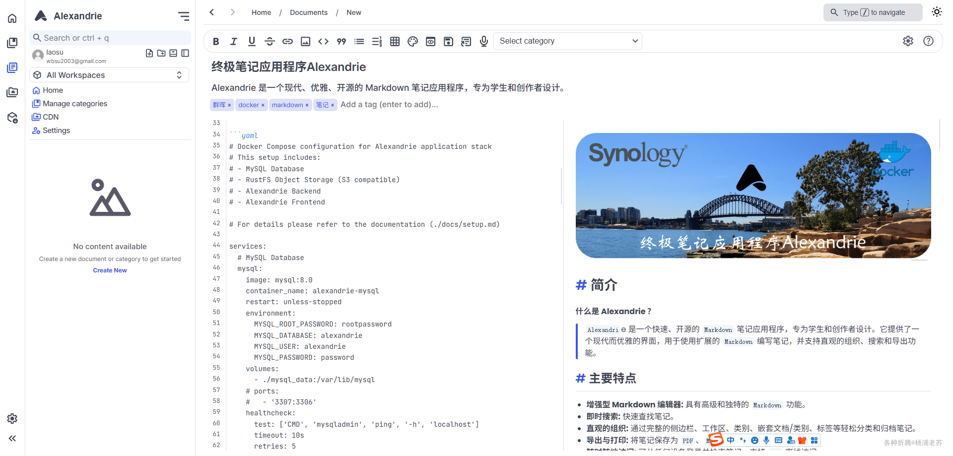 - 直观的组织: 通过完整的侧边栏、工作区、类别、嵌套文档/类别、标签等轻松分类和归档笔记。