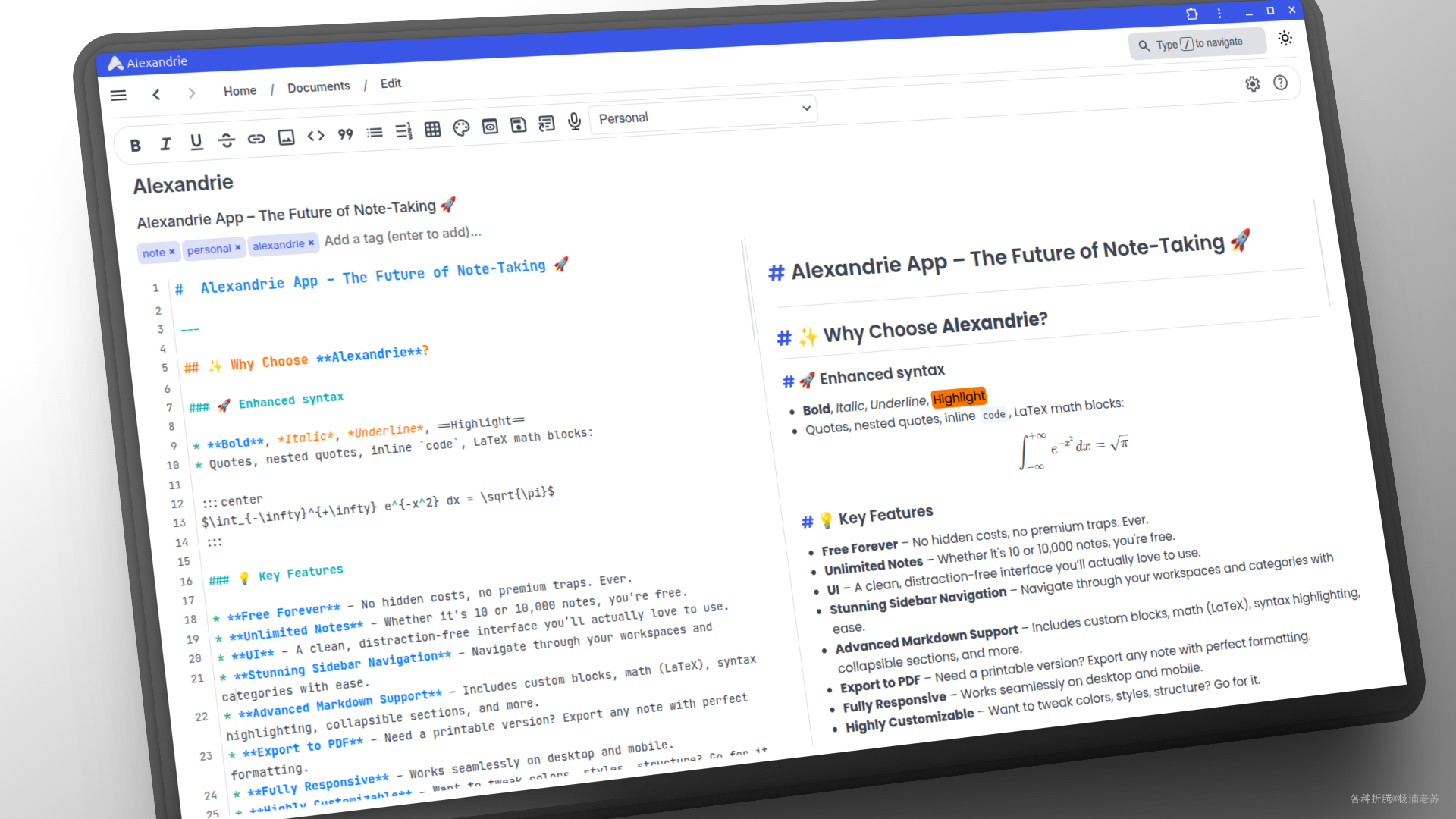 Alexandrie 是一个功能强大且用户友好的笔记应用,适合各种用户需求,尤其是在学习和创作方面提供了优越的支持。