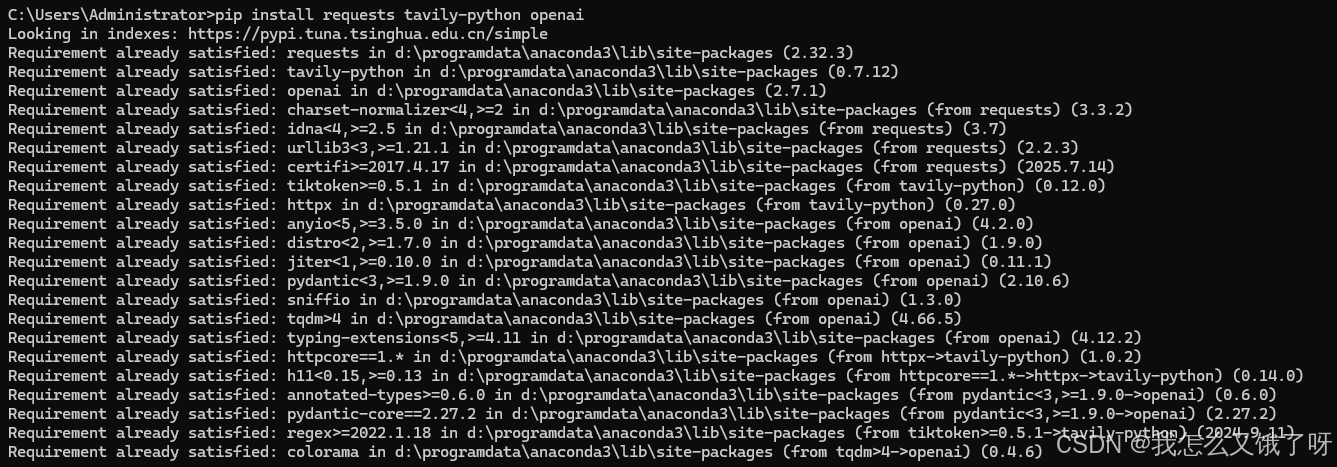 安装必要的第三方库(包括requests、tavily-python、openai)