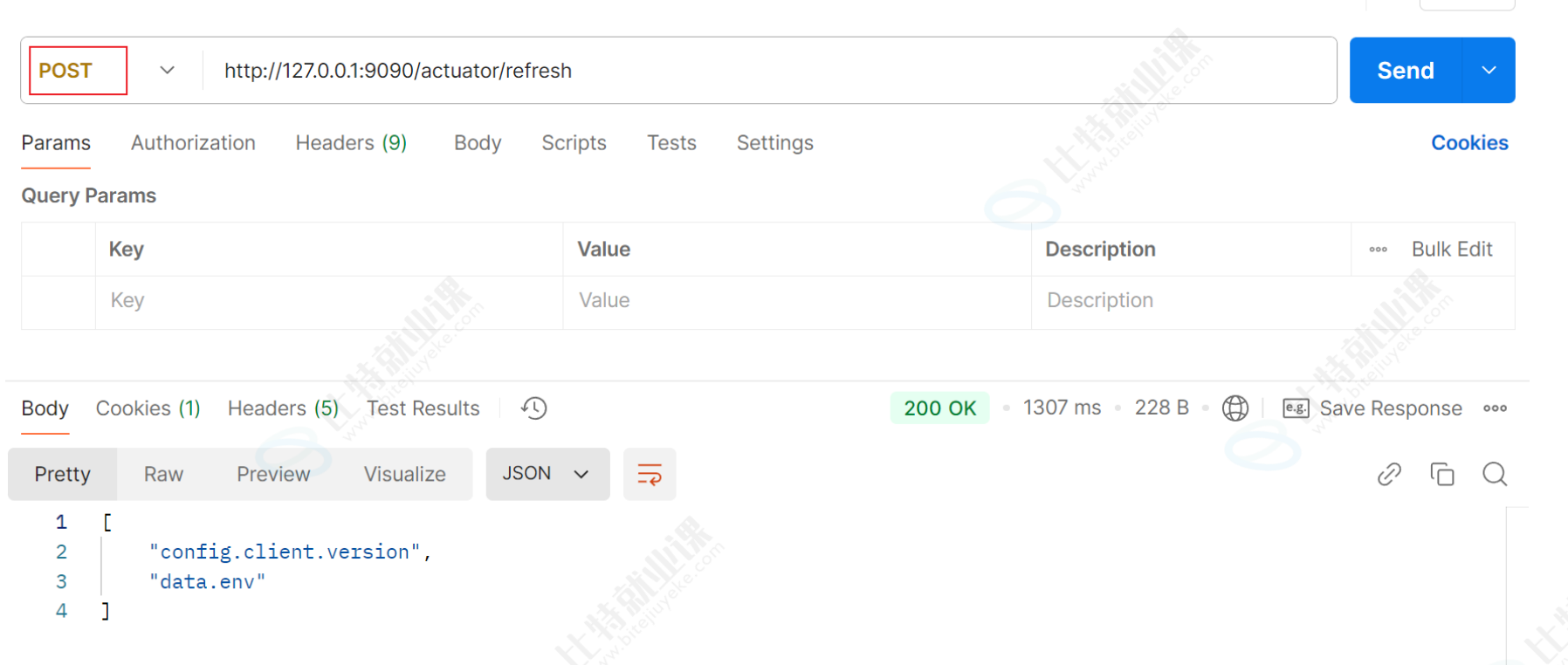 要⼿动调⽤⼀下接⼝ http://127.0.0.1:9090/actuator/refresh (POST请求)动态刷新 Spring Cloud