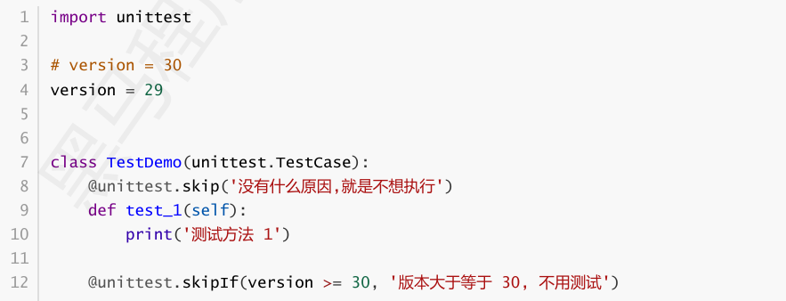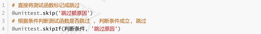 对于一些未完成的或者不满足测试条件的测试函数和测试类, 不想执行,可以使用跳过