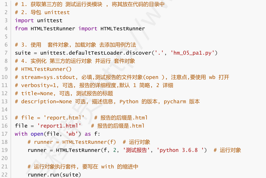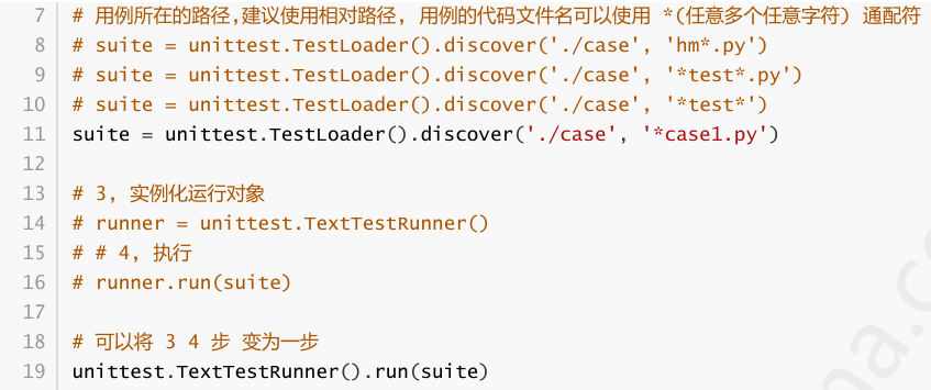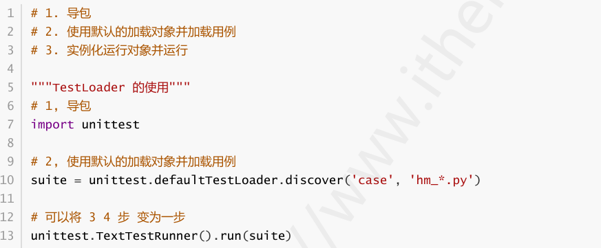 - 实例化测试加载对象并添加用例 ---> 得到的是 suite 对象