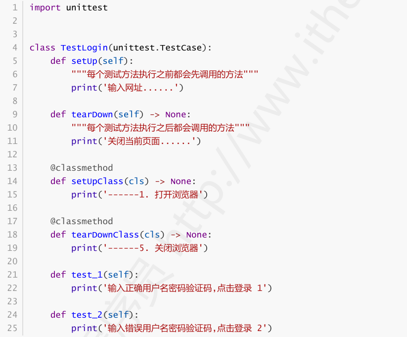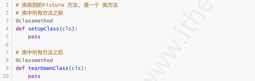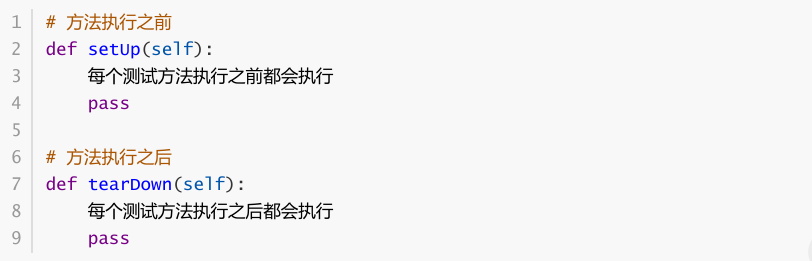 在每个测试方法(用例代码) 执行前后都会自动调用的结构