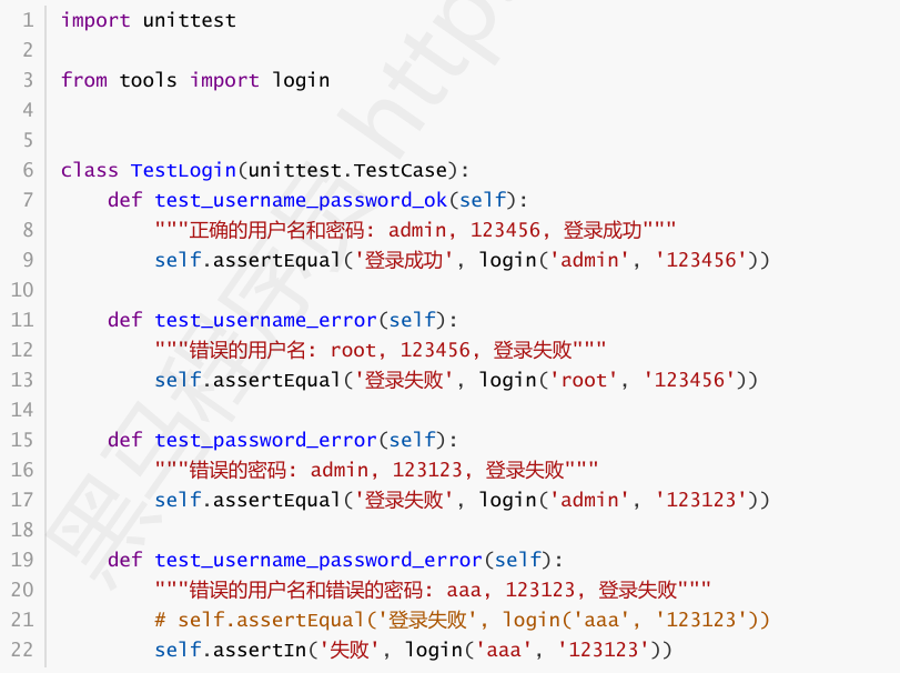 在 unittest 中使用断言, 都需要通过 self.断言方法 来试验