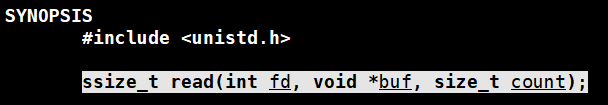 从指定的文件描述符里读数据,读到buffer里,读count个字节,返回实际读取的字节数。