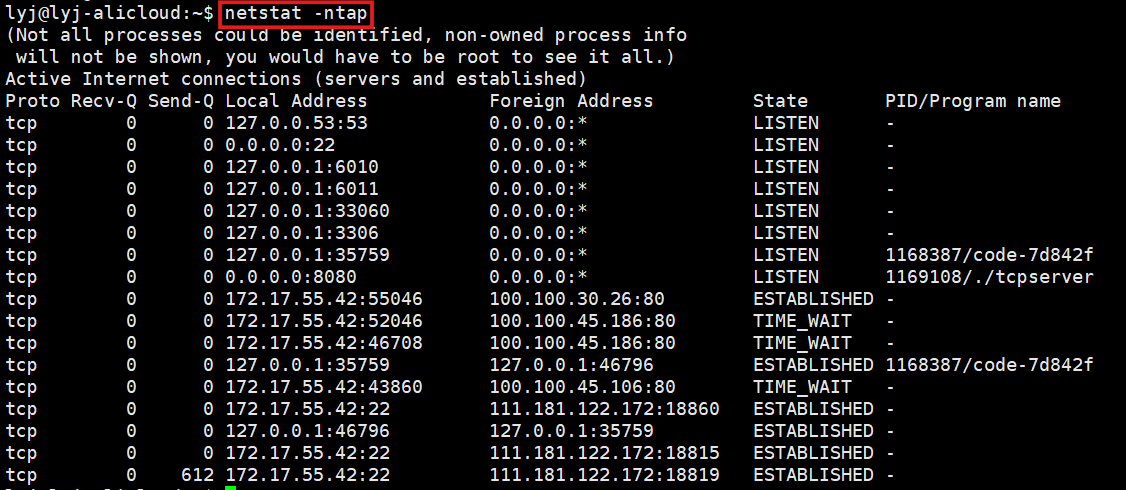 这里用a选项打印出来的太多了,还有一个选项是l,表示listen状态。