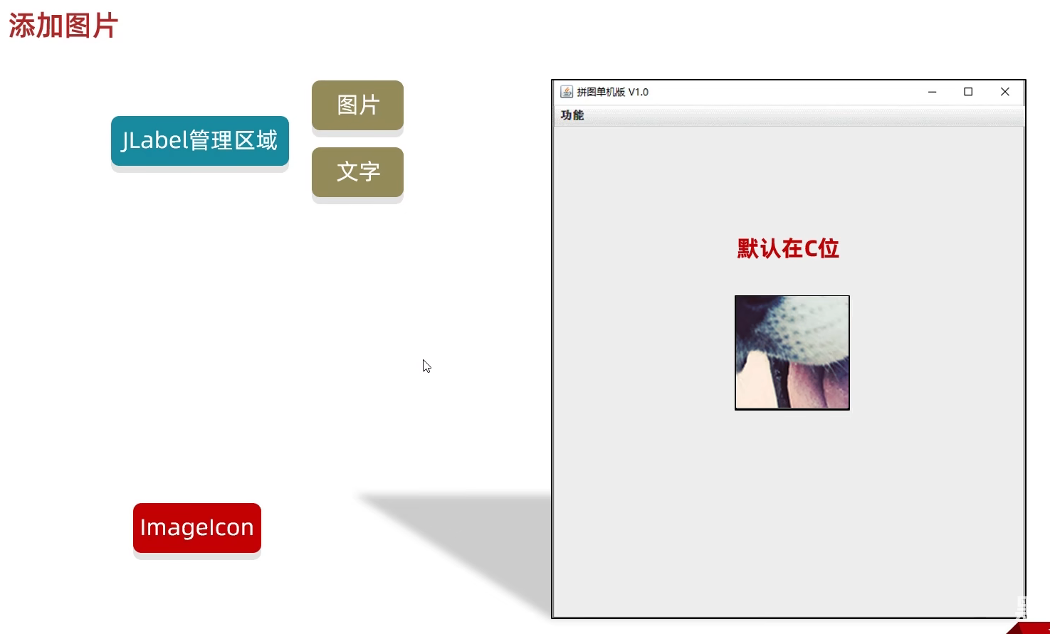 由于图片中没有第16张,在添加第16张时,它也会加载一个 JLabel ,只不过它找不到要管理的图片,因此会加载一张空白