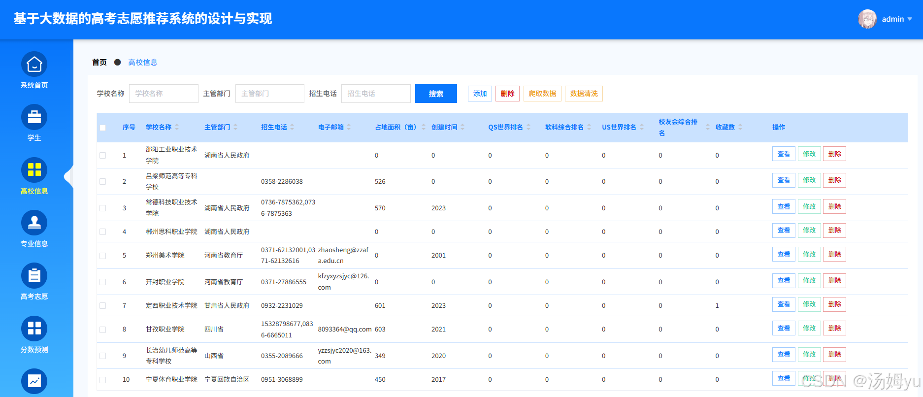 国内的高考志愿推荐系统研究近年来也取得了显著进展。随着科技的发展,国内教育机构和科技公司纷纷投入研发,推出了多种基于数据挖掘技术的高考志愿填报平台。这些平台通常整合了全国各高校的招生信息、历年录取分数线以及专业设置等多方面数据,通过建立复杂的算法模型,为学生提供科学合理的志愿填报方案。一些平台利用大数据分析技术可以预测高校的录取分数线走势,帮助学生更精准地选择志愿。国内的研究还注重与实际教育场景的结合,通过与学校、教育部门的合作,不断完善系统的功能和服务。国内的研究也关注如何提高系统的用户友好性,通过简洁直观的界面设计,使学生和家长更容易上手使用,从而更好地辅助高考志愿填报决策。