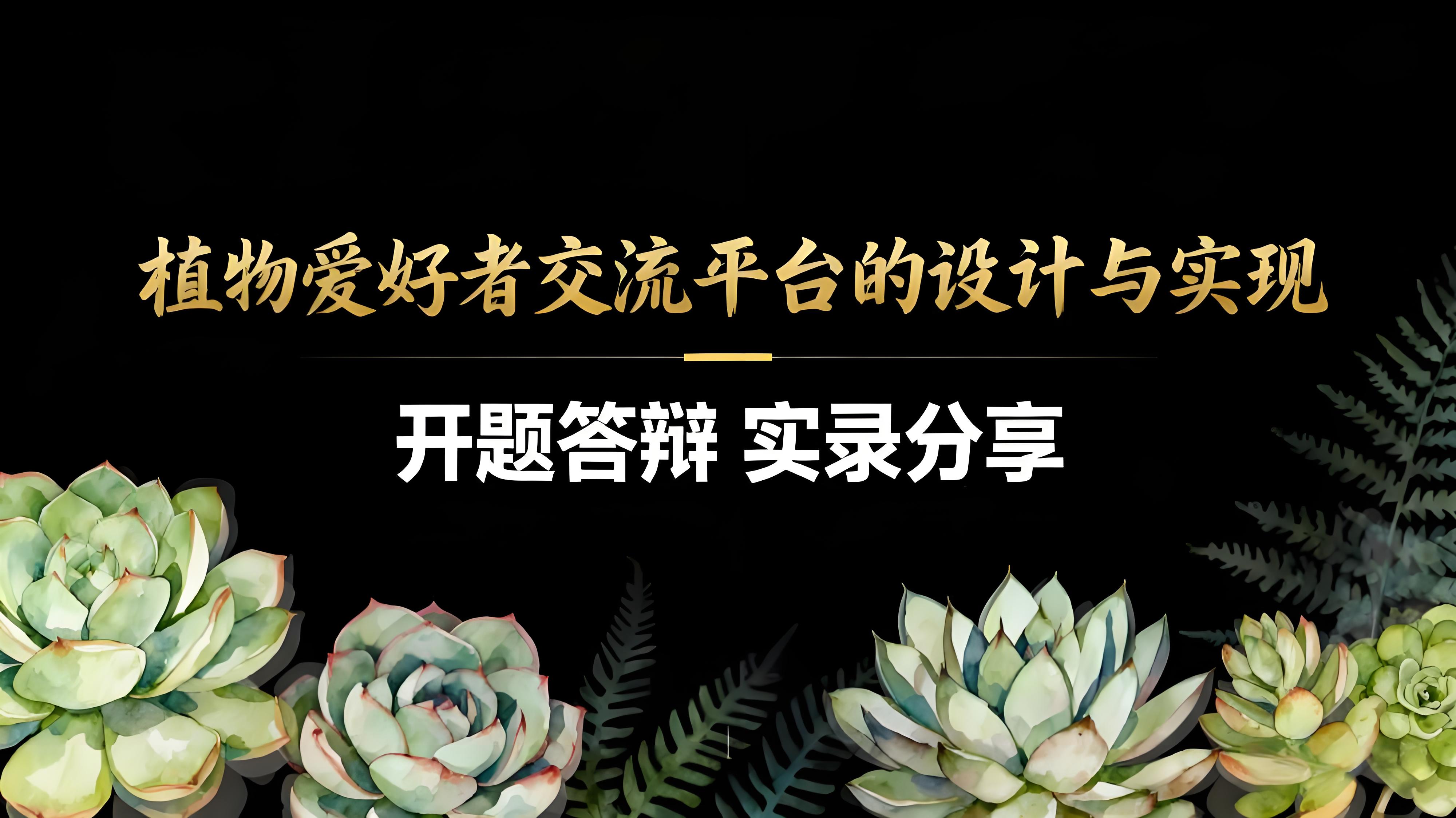 各位老师好,我是软件学院的H同学,我的毕业设计题目是《植物爱好者交流平台的设计与实现》。该平台旨在为植物爱好者提供知识分享与社交互动的线上社区,核心功能包括用户管理、种植养护知识库、植物日志记录、交流论坛发帖互动、家种植物推荐以及在线聊天等模块。