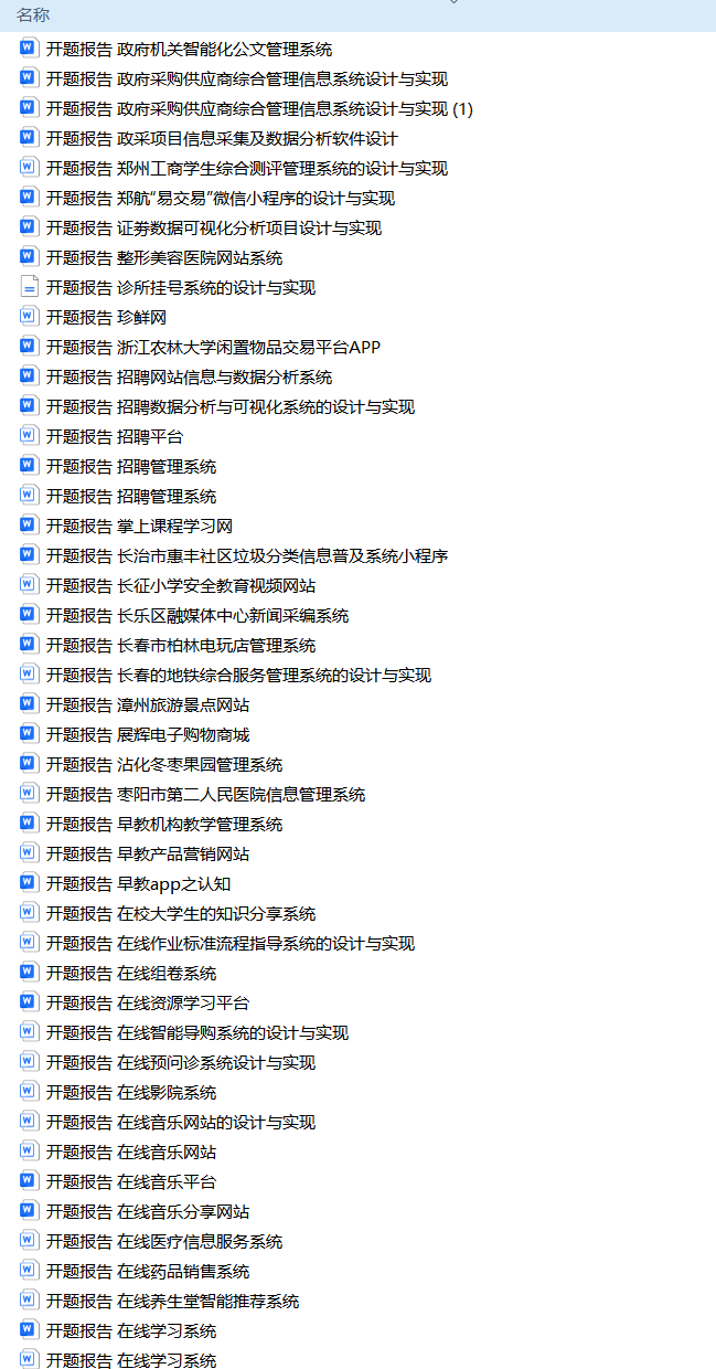 以上是H同学的毕业设计答辩过程,如果你现在还没有参加答辩,还是开题阶段,已经选好了题目不知道怎么写开题报告,可以下面找找有没有自己符合自己题目的开题报告内容,列表中的开题报告都是往届真实的开题报告可参考。