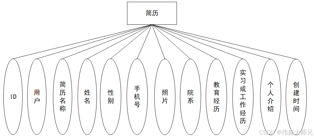 (6)使用Visio这样的常用的实体属性图绘制工具来绘制简历实体属性图,绘制结果见图4-6。