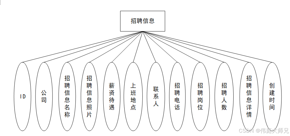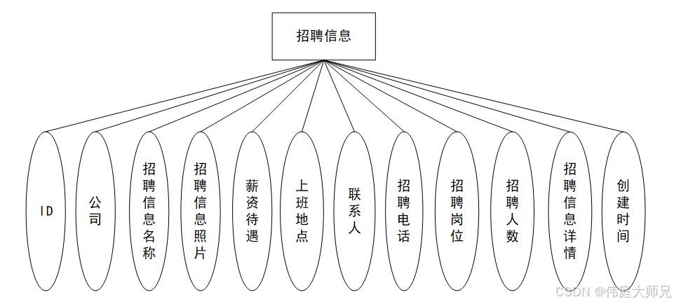 (7)使用Visio这样的常用的实体属性图绘制工具来绘制招聘信息实体属性图,绘制结果见图4-7。