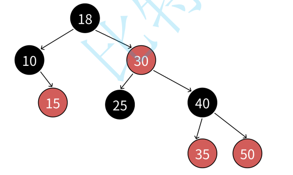 - 如果一个结点是红色的,则它的两个孩子结点必须是黑色的,也就是说任意一条路径不会有连续的红色结点。