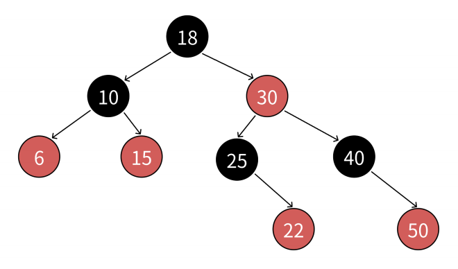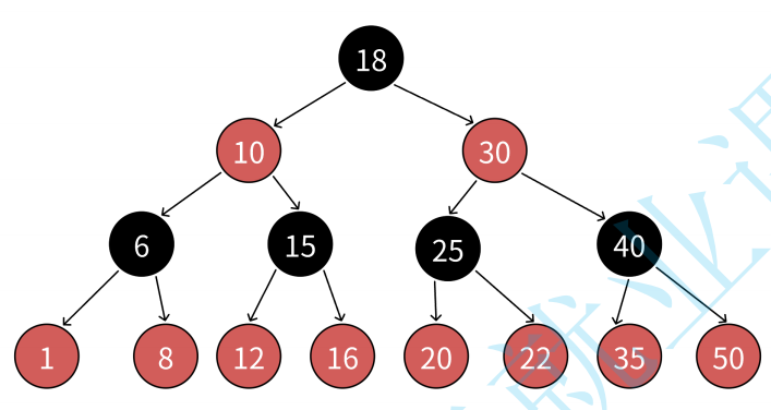 - 对于任意一个结点,从该结点到其所有 NULL 结点的简单路径上,均包含相同数量的黑色结点