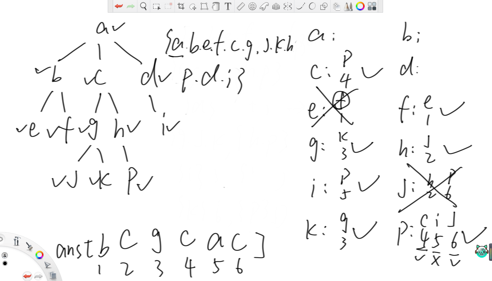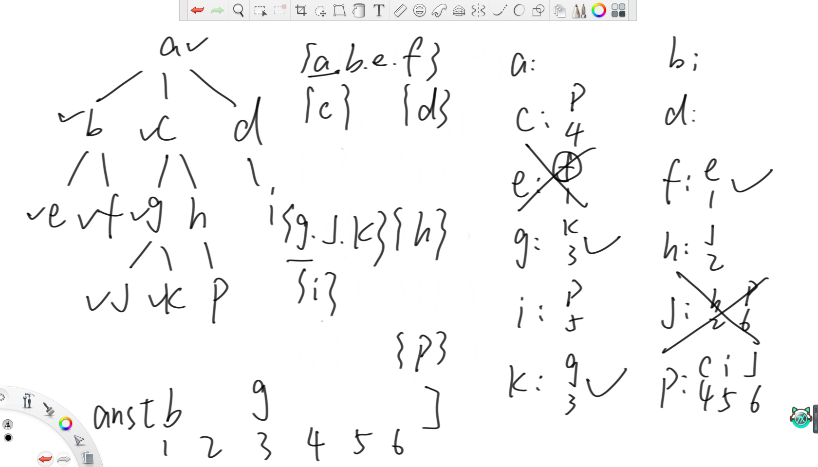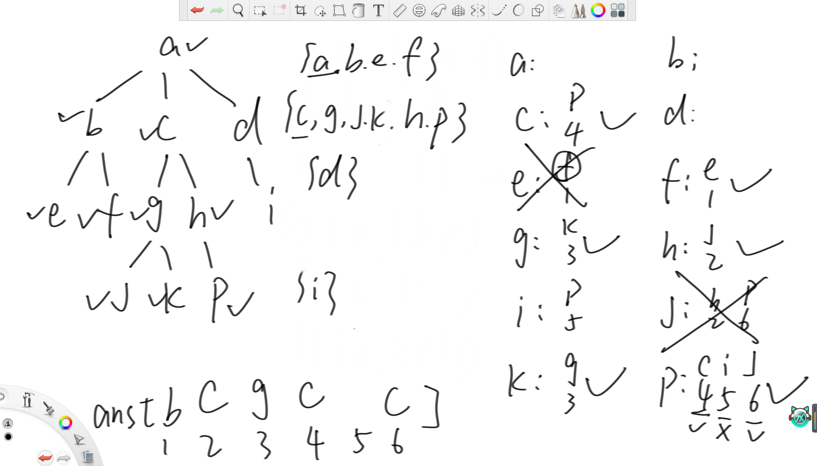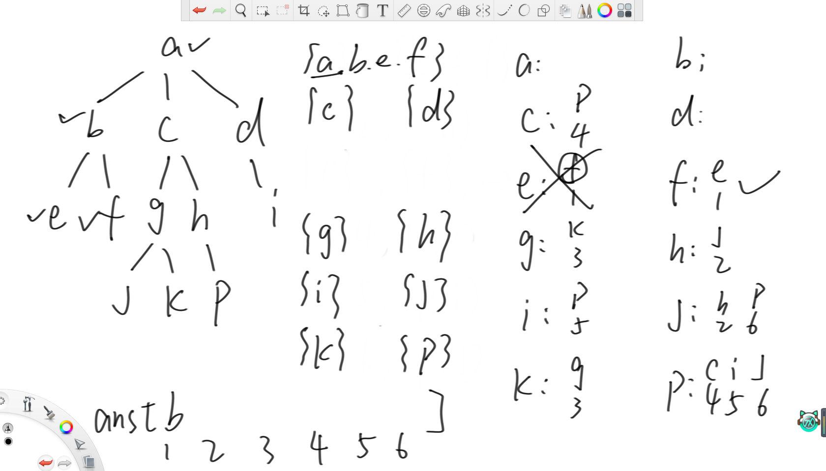 最后来到节点i时可以把和节点p的lca设置为p所在集合的代表元素,所以就是节点a。