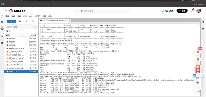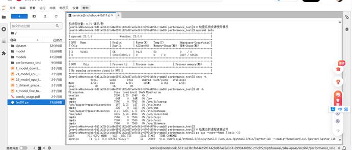 Bash # 检查系统资源使用情况 npu-smi info free -h df -h # 检查当前进程资源占用 ps aux --sort=-%mem | head -10