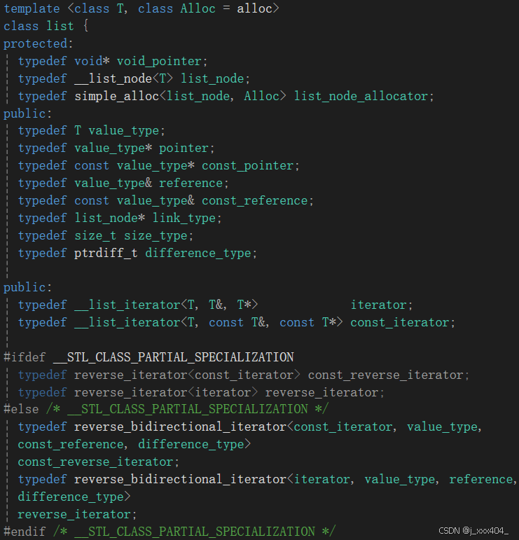 {using Self = list_const_iterator<T>;using Node = list_node<T>;Node* _node;list_const_iterator(Node* node):_node(node){}//*itconst T& operator*(){return _node->_data;}//++itSelf& operator++(){_node = _node->_next;return *this;}Self operator++(int){Self temp(*this);_node = _node->_next;return temp;}Self& operator--(){_node = _node->_prev;return *this;}Self operator--(int){Self temp(*this);_node = _node->_prev;return temp;}bool operator!=(const Self& s) const{return _node != s._node;}bool operator==(const Self& s) const{return _node == s._node;}